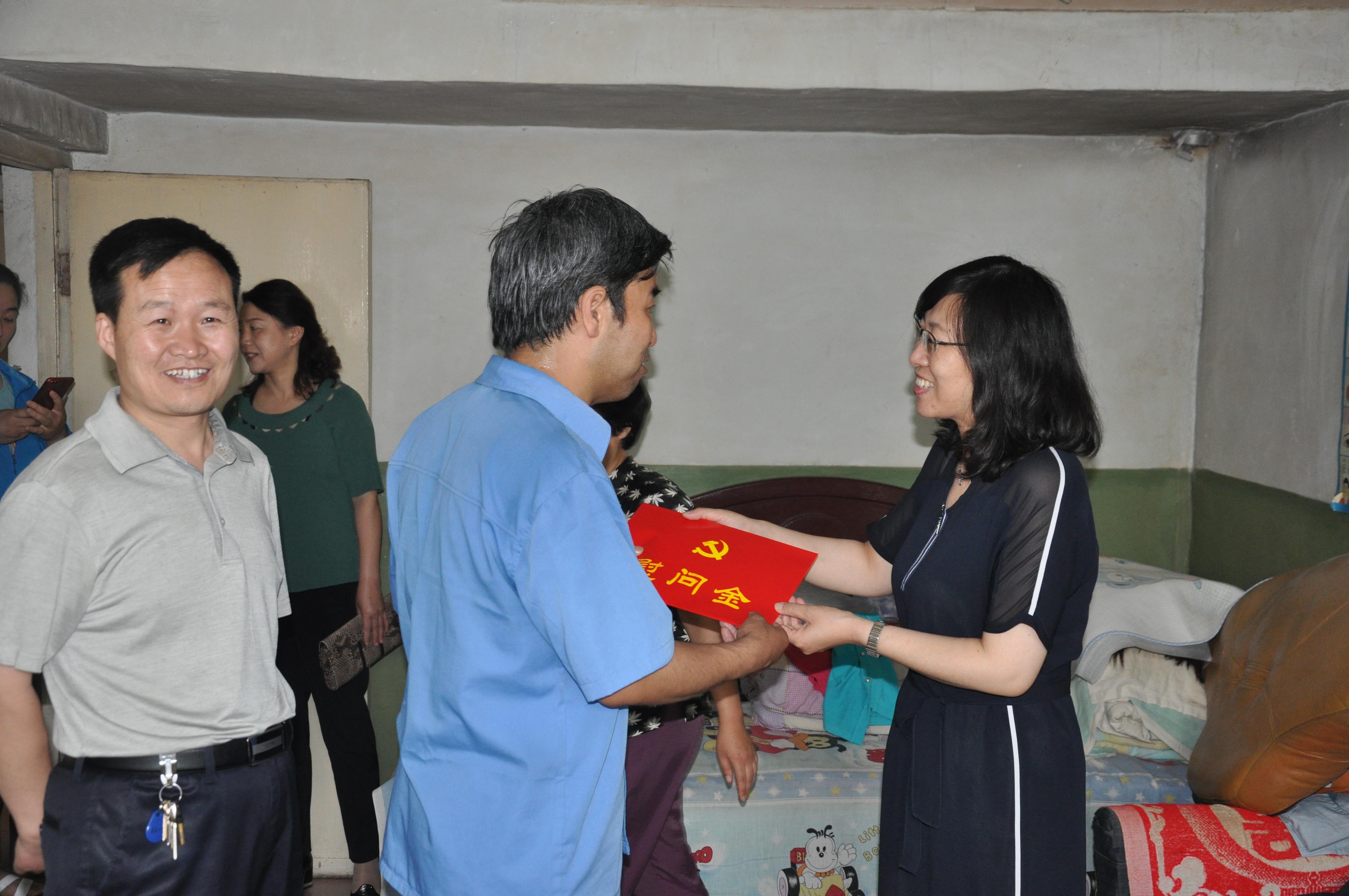 宋淑琴一行首先来到伟德国际1946淮海发动机机加部工作的老党员杨宝杰的住处,当了解到老党员杨宝杰的父母都已是八十高龄和其母因患脑血管病导致生活不能自理、孩子上学花费较大、工资收入偏低,一家五口人居住在一套二居室的生活情况后,宋淑琴表示非常同情和理解,随后将1000元慰问金送到杨宝杰的手中,鼓励他要振作精神、克服暂时的困难,党组织会一直给予关注他和家人的生活。之后来到伟德国际1946淮海发动机质量部工作的党员姚雪雁家中,了解到其独自抚养的女儿今年高考远超一本分数线,而家中经济拮据、十分困难的状况时,宋淑琴代表党组织送上了1000元慰问金,并叮嘱姚雪雁,党组织会全心全意帮助和关心她和她的家人的生活。从党员姚雪雁家出来后,又到伟德国际1946汽车总装车间看望了正在生产一线工作的王超、王伟堂两位困难特效生。王超的父亲在家务农,体弱多病,去年其母因一场车祸去世,家中还有一聋哑的弟弟,家庭生活十分困难。另外,王伟堂父亲于去年7月去世,在家务农的母亲体弱多病,其爱人也是智障,双方有一个5岁的儿子,全家五口人靠他微薄的工资维持生计,生活特别困难。伟德国际1946汽车总装车间主任董俊超分别介绍了王超、王伟堂的家庭情况及平时工作的情况,对两位在工作中的突出表现表示赞同,纷纷竖起大拇指点赞,并鼓励王超、王伟堂在伟德国际1946汽车这个温暖的“大家庭”努力工作,以乐观向上的生活态度珍惜当下,有困难及时与党组织沟通,党组织将以最大能力为他们排忧解难,解决个人的实际困难。此后,分别向他们各发放了1000元慰问金。面对党组织的关怀,王超、王伟堂两位聋哑人显得非常激动,他们用聋哑人特别的交流方式表示,感激党组织关怀,将竭尽自己所能,珍惜岗位,为社会和企业的发展做出积极的贡献。