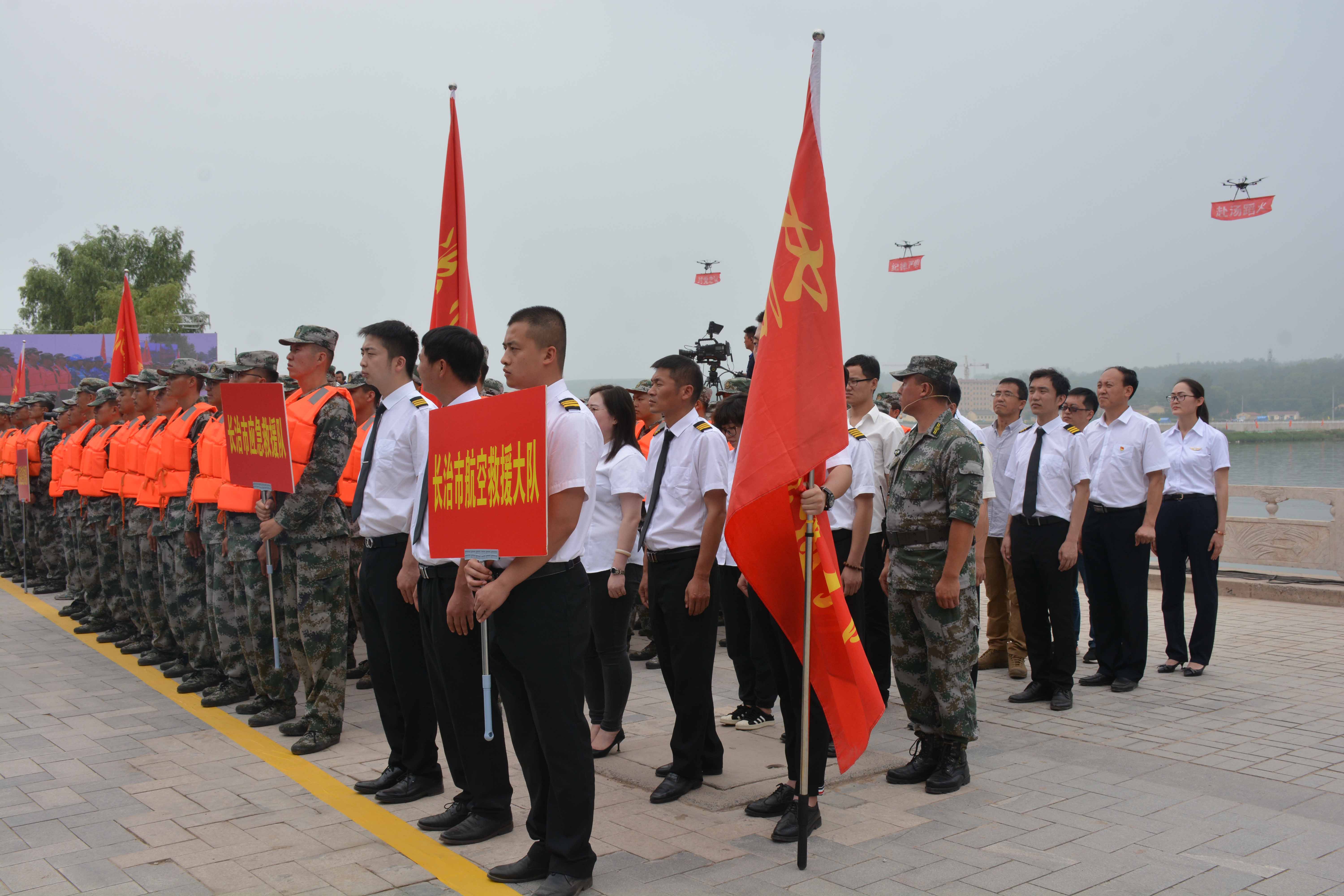 为进一步强化应急预案保障措施的落实,提高全市应对安全生产事故和突发性事件的能力,如何正确、准确、迅速处理突发事件,长治市组织开展防洪防汛应急演练,本次演练由长治市防汛抗旱指挥部主办,沁县防汛抗旱指挥部承办,长治市应急救援队,长子县应急救援队,沁县应急救援队,沁源县应急救援队,长治市消防支队,长治市航空救援大队,伟德国际1946通航、蓝天救援队、天龙救援队,共计参演人员千余人。
