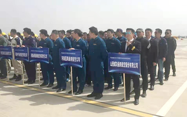 3月28日上午九时,两架黄色固定翼灭火飞机呼啸着飞过郑州上街机场跑道上空,在解说员铿锵的解说声中,在十五米高度,将红色灭火剂精准地抛撒至预定的区域,拉开了“河南省2021年航空应急救援演练”的帷幕。