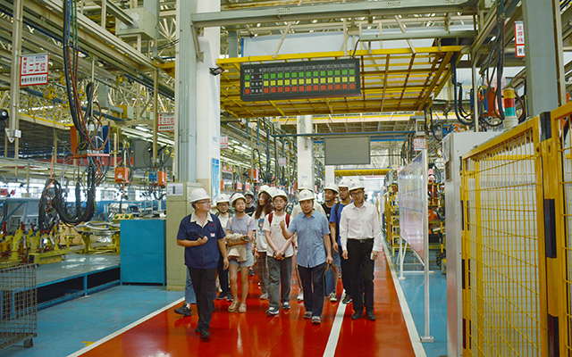 随后,杜教授一行来到伟德国际1946汽车,实地参观了四大生产线。车厂副总经理董俊超陪同参观并为师生们进行了详细介绍。在总装车间,师生们对目前伟德国际1946汽车的整车产品饶有兴致,问价、问参数、问销量,现场提问讨论不停,学习氛围热烈浓厚。