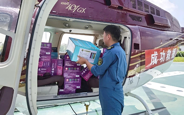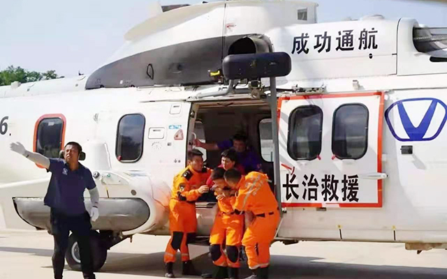 救援队深入灾区一线,凭借机组成员过硬的技术,采取长时间低空悬停飞行作业,转移解救受困洪水中的的群众到安全地带。中午12点,飞机准时起飞。