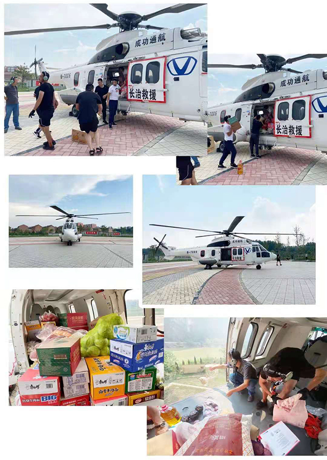 下午14:00时,经过周密的准备,空客H225直升机B-70X6飞机飞抵晋城市高都镇,在此待命的晋城市应急管理局的工作人员将所有救援物资装机。B-70X6机组成员在晋城市应急管理部门工作人员的引导下,于15:00点抵达受灾地点,克服复杂地势和恶劣的气候条件,凭借过硬的技术,采取长时间低空悬停飞行作业,顺利将救灾物资投送到指定地点,解决了受困群众的燃眉之急。