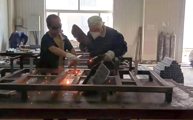 面对新型盛具制作任务,总装部员工自行设计工装夹具。设计难度大,要求也高,尤其是对焊接工艺,更是把控严苛:不能有漏焊和表面气孔。