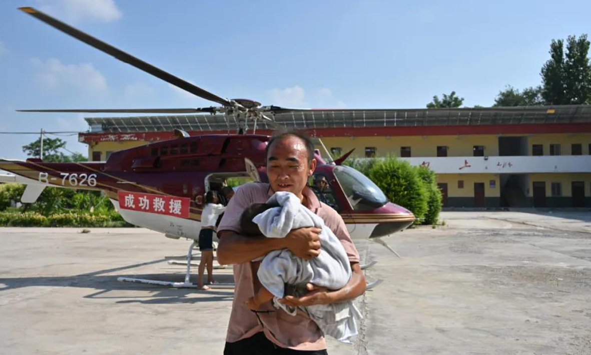 8个月大的婴儿和家人受困5天5夜,在伟德国际1946通航直升机的及时救援下安全脱困;