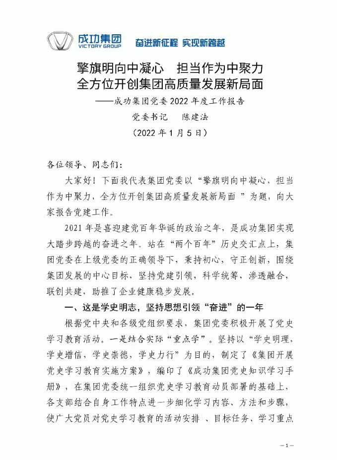 擎旗明向中凝心 担当作为中聚力 全方位开创集团高质量发展新局面――伟德国际1946党委 2022 年度工作报告
