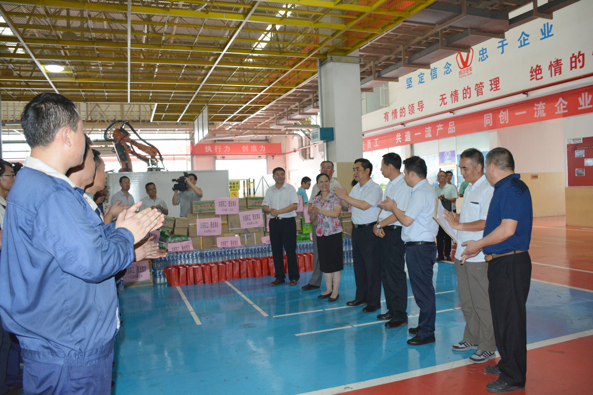 在活动现场,崔建泰说:“市总工会积极响应国家号召,在全市开展‘关爱职工、夏送清凉’慰问活动,慰问夏季高温环境中坚持一线工作的职工,体现了我们党和政府对生产一线职工的关怀。”他还说:“长治县转型发展新型企业是一个好的态势,而在创业发展中突出的伟德国际1946汽车就是一个很好的案例,今年也是政府首次进入装备制造业进行慰问,为工作在一线的职工送去绿豆、凉茶、白糖、水杯、毛巾等。”他最后说:“希望伟德国际1946汽车一线职工珍惜岗位、关心企业,撸起袖子加油干,为长治县和伟德国际1946的健康发展做出积极的贡献。”之后,市总工会领导及集团董事长马国利为焊装车间一线员工分送了慰问品。