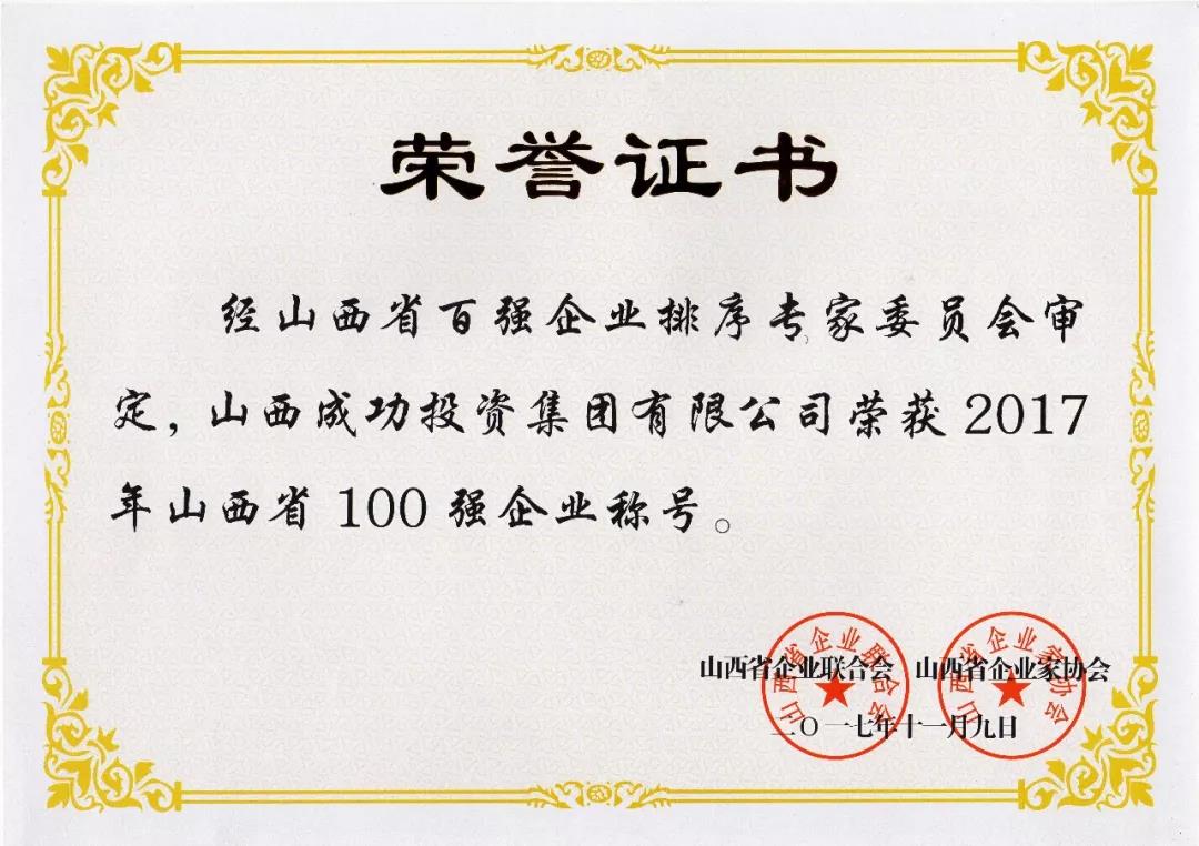 由山西省企业联合会与山西省企业家协会联合主办的“2017山西省企业100强”排序及分析报告发布会在省会太原大昌国际酒店举行。集团在综合100强企业中排行39位,与去年59位相比上升了20位,在制造业企业中由去年第28升至17上升了11位。