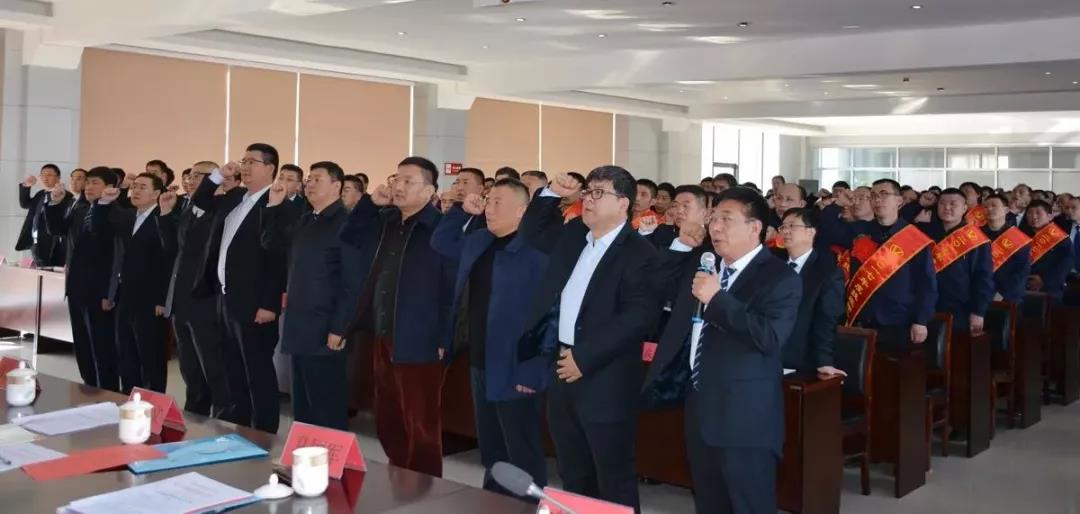 2月28日下午,矿产事业部在西掌煤业一楼大会议室召开了“2017年工作总结表彰暨2018年安全生产誓师动员大会”。集团总裁马国利、副总裁陈国东、赵安平、总裁助理狄国文、顾问吕彦青;矿产事业部总经理宋建明、副总经理李法俊、段长明、马国军在主席台上就座;集团总部、矿产事业部各职能部门和西山、西掌、太义掌、首阳山煤业的负责人以及2017年受表彰的先进集体、模范个人代表230余人参加了会议。会议由矿产事业部副总经理李法俊主持。