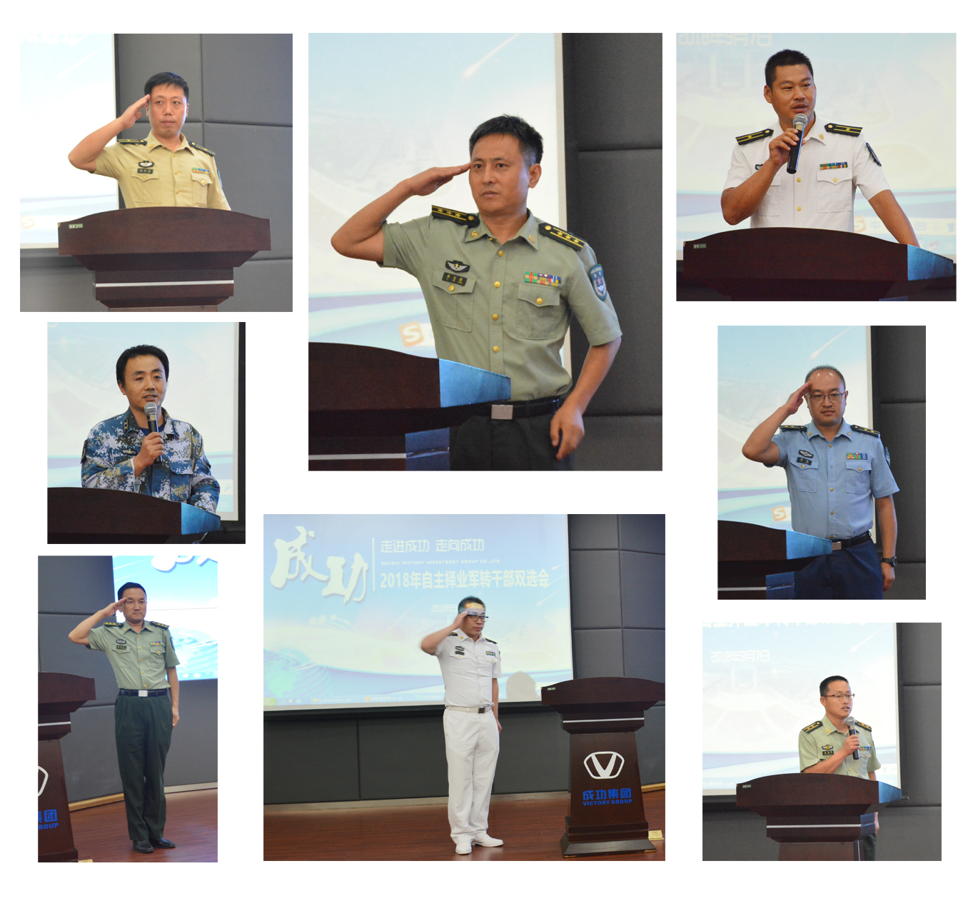 双选会上,原武警助理工程师张春林、原海军航空兵学院工程师王宏、原火箭军助理工程师梁雪强等军转干部分别上台,一个个标准的军礼就像军魂一样感染着现场所有的人,一波一波的军礼顷刻之间化作无形的动力催发了一种浩然正气……军转干部各自介绍了从军的简历并表达了自己的心愿,走进伟德国际1946,了解伟德国际1946,更愿选择伟德国际1946走向新的伟德国际1946。此后这些军转干部分别与伟德国际1946通航、伟德国际1946汽车、联盛和长清生物、长清科技等公司负责人进行了洽谈与交流。