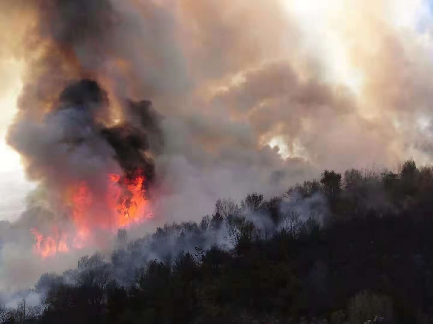 10月28日下午,长治屯留县张店镇西五公里附近山林突发森林大火,距长治机场290度、约58公里。火借风势、风助火威,森林大火蔓延速度令人瞠目,瞬间,浓烟翻滚、火光冲天……面对山火,当地政府及相关部门快速反应,积极组织力量进行全力扑救,一直到晚上9点多钟所有明火基本被压制,各块区立即展开了隐藏火点的清查工作。第二天上午10点左右,在附近山区再次发现明火,相关部门再次调集人员进行扑救。据了解,截止到30日凌晨,共有3000多名专业灭火队员和当地群众参与了此次灭火行动,由于火情发生地位于山岗土岭地区,且距村镇较远,整个扑救及时未造成人员伤亡。