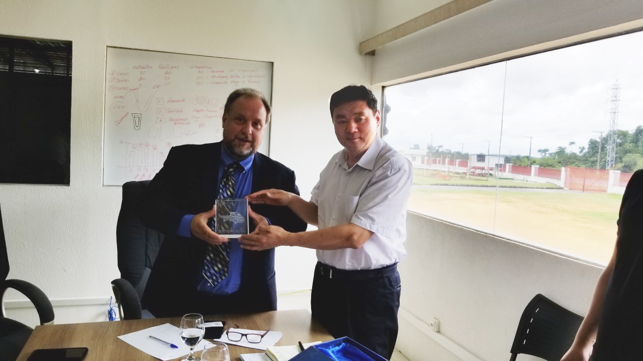 伟德国际1946总裁马国利先生为巴西客户颁发合作奖杯