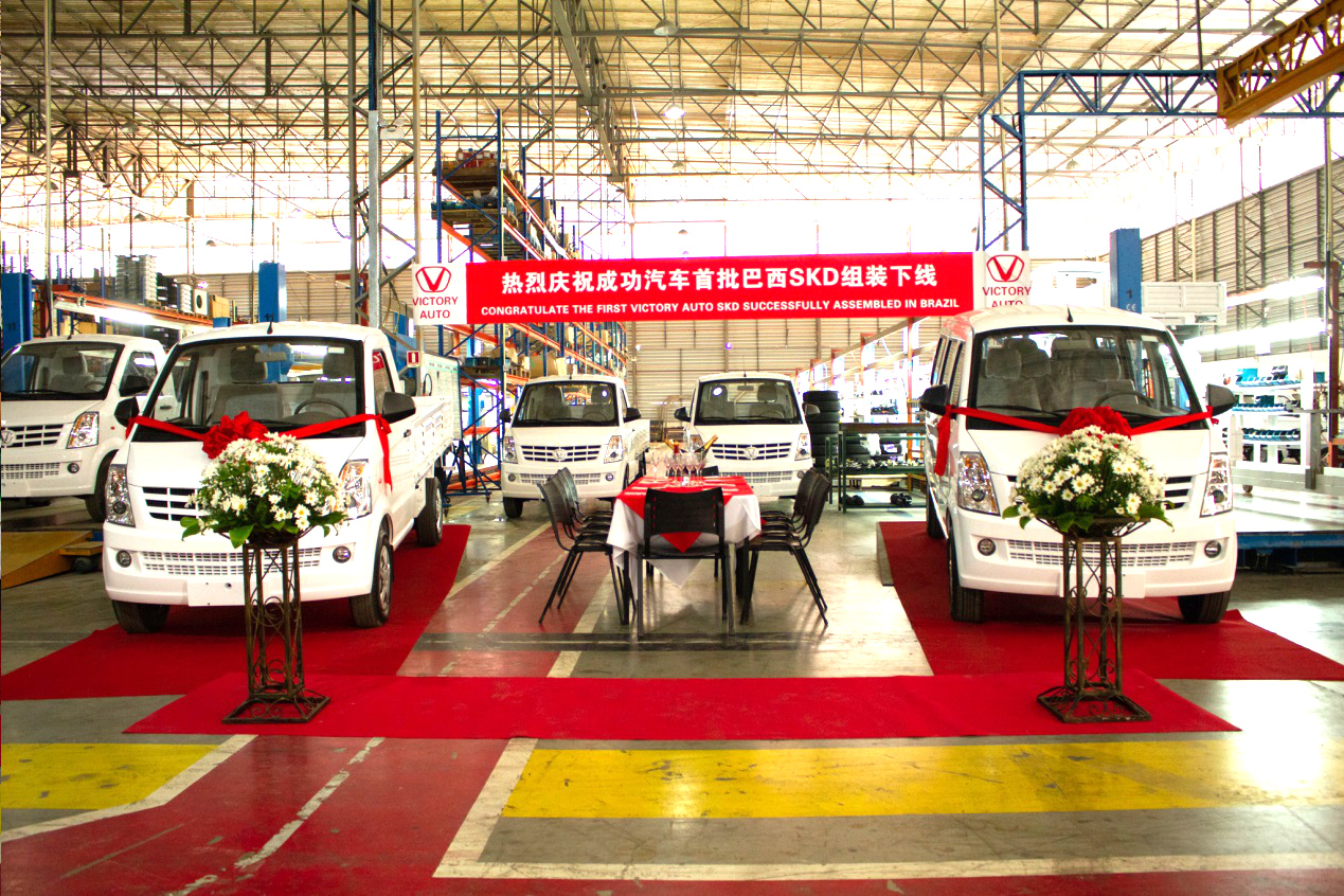 “伟德国际1946布局”是集团五年发展规划重要的组成部分,“海外建线”是伟德国际1946汽车走向世界的战略目标之一。近年来,集团以国际国内市场为落脚点,积极采取“外拓内销”的方略,一手抓海外市场整车贸易出口和技术输出建线;一手抓国内市场伟德国际1946新能源汽车销售和直营店布点。目前,伟德国际1946汽车在南美巴西建成首家KD工厂,并实现首台新车下线。12月15日,在巴西KD工厂总装车间举行了首台K1、K2轻型卡车及6430乘用车下线仪式,集团总裁马国利、汽车事业部副总经理张莹莹、北京易驰总经理李欣和巴西组装工厂总裁为新车下线仪式剪彩,正式掀开了伟德国际1946汽车“海外”组装的序幕。