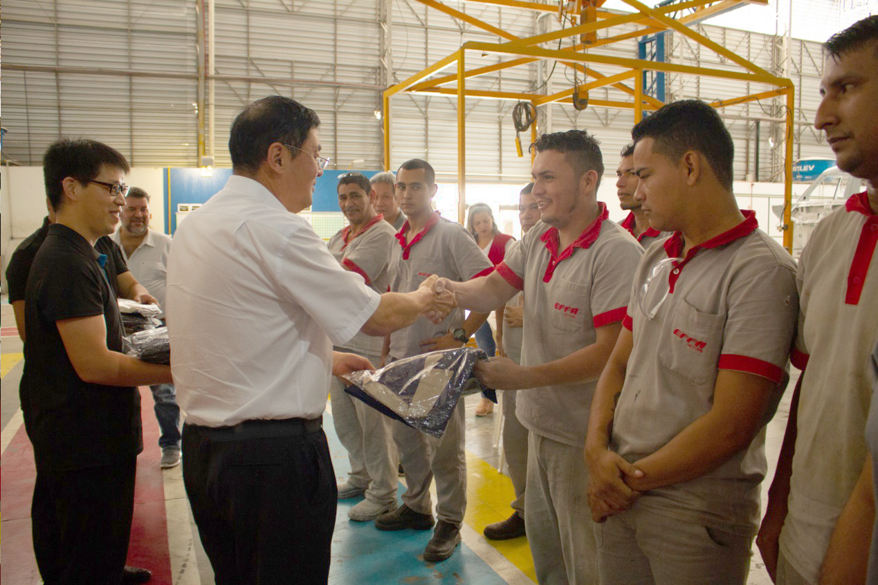 伟德国际1946总裁马国利先生为巴西组装厂工人赠送伟德国际1946汽车工作服